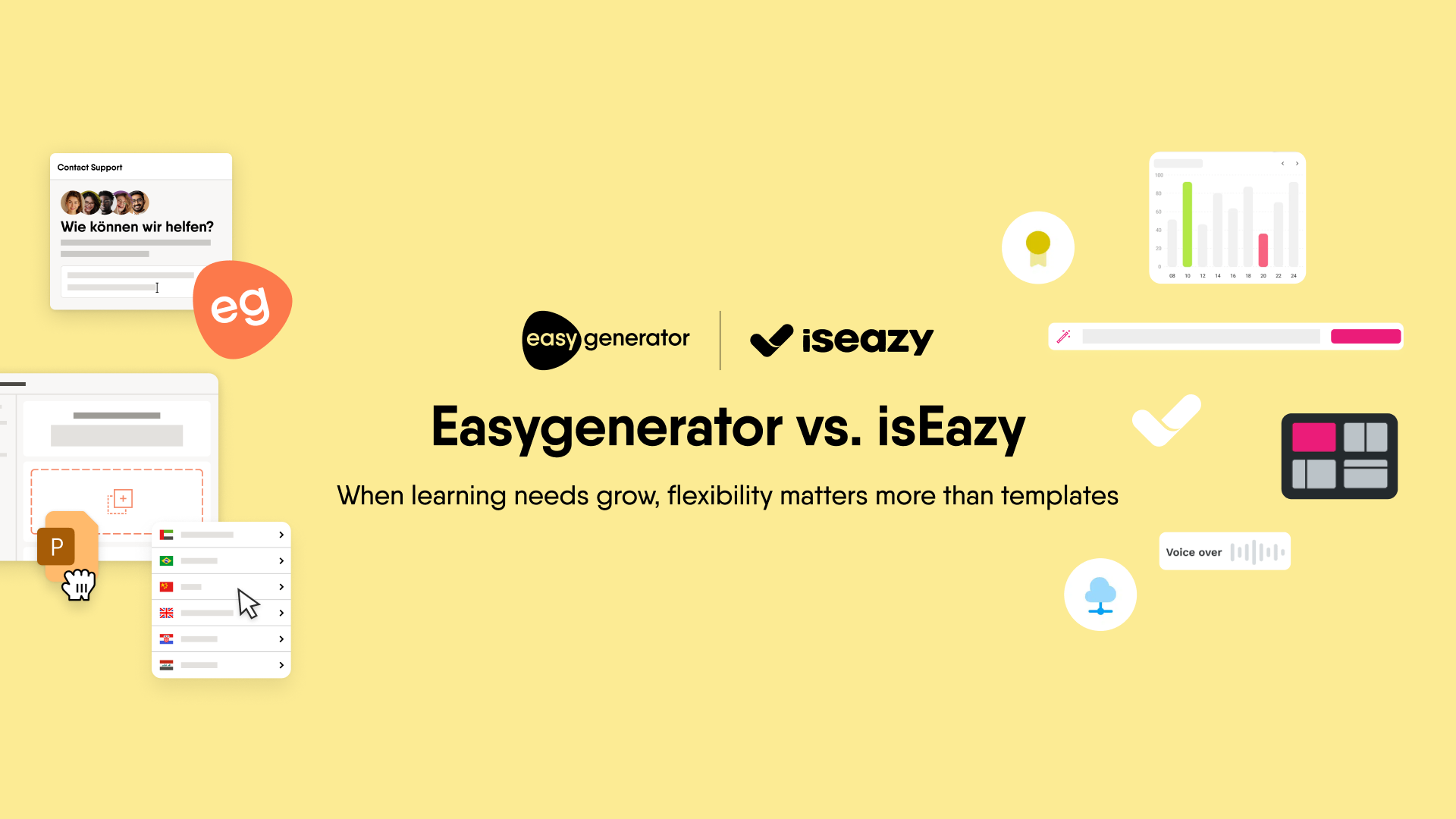 Both Easygenerator and isEazy are easy to adopt for first time authors. Easygenerator keeps that simplicity while allowing more freedom as content needs grow, which helps teams avoid limitations later on.