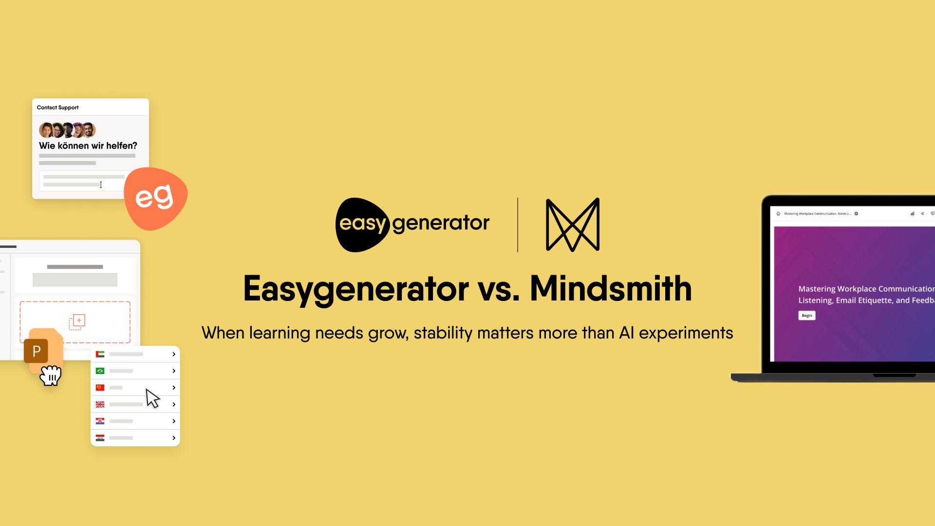Yes, Mindsmith alternatives such as Easygenerator support SCORM and xAPI. Easygenerator also offers dynamic SCORM, which keeps LMS content up to date without repeated manual uploads.