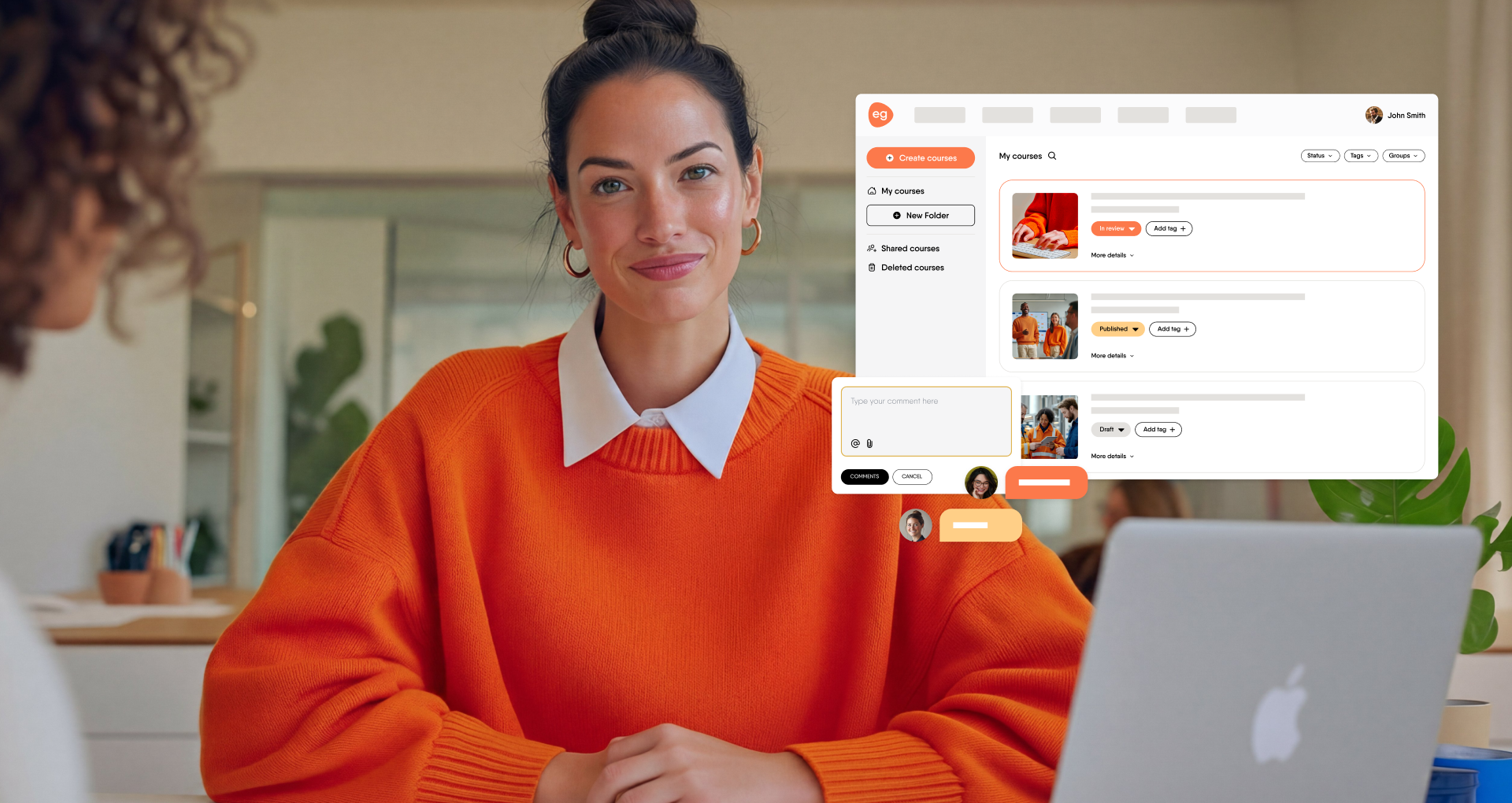 Easygenerator gives internal experts a simple course creation environment they can use without instructional design experience. L&D teams can invite internal experts to co-author courses directly, review content, and leave feedback. This lets L&D focus on learning quality instead of rebuilding content from scratch.