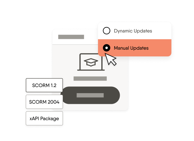 Choose manual SCORM if you want to host courses on your LMS or LXP and control when to update those courses.