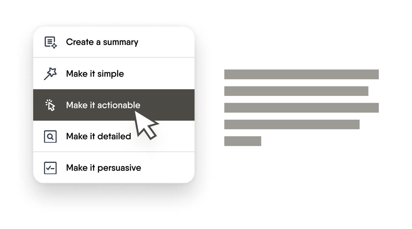 Get feedback on grammar, tone, and readability. Highlight parts to instantly improve. Share what you know without getting stuck on wording.
