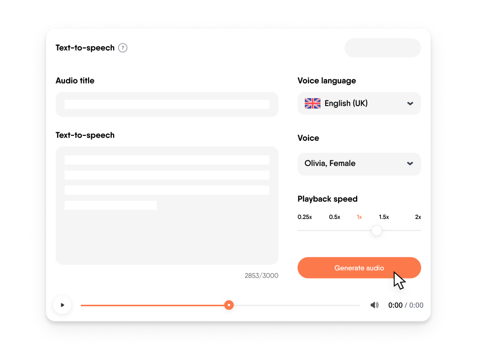 Generate, preview, and publish audio in the same editor where you write. When you update the text, the narration updates with it.