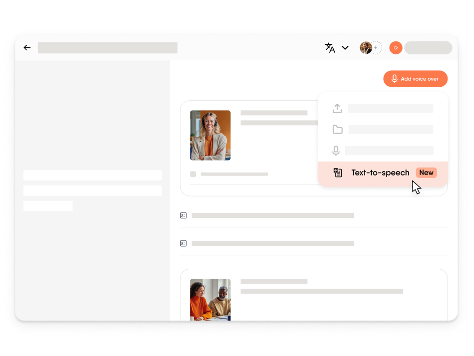 Text-to-speech is inside your editor. Write the content, pick a voice, generate narration. You don’t need extra tools or extra people.