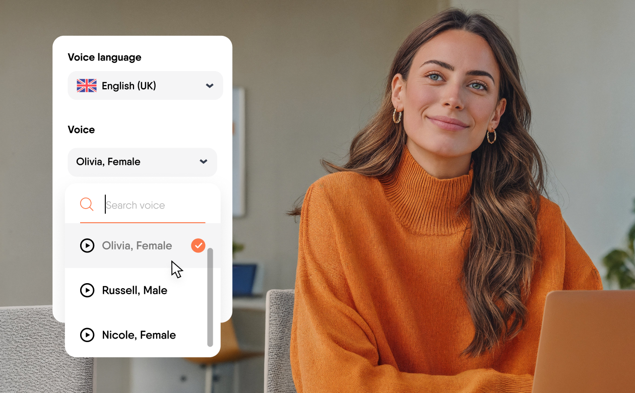 Create once and deliver in multiple languages. Generate localized narration instantly and keep all versions consistent, even when content changes.
