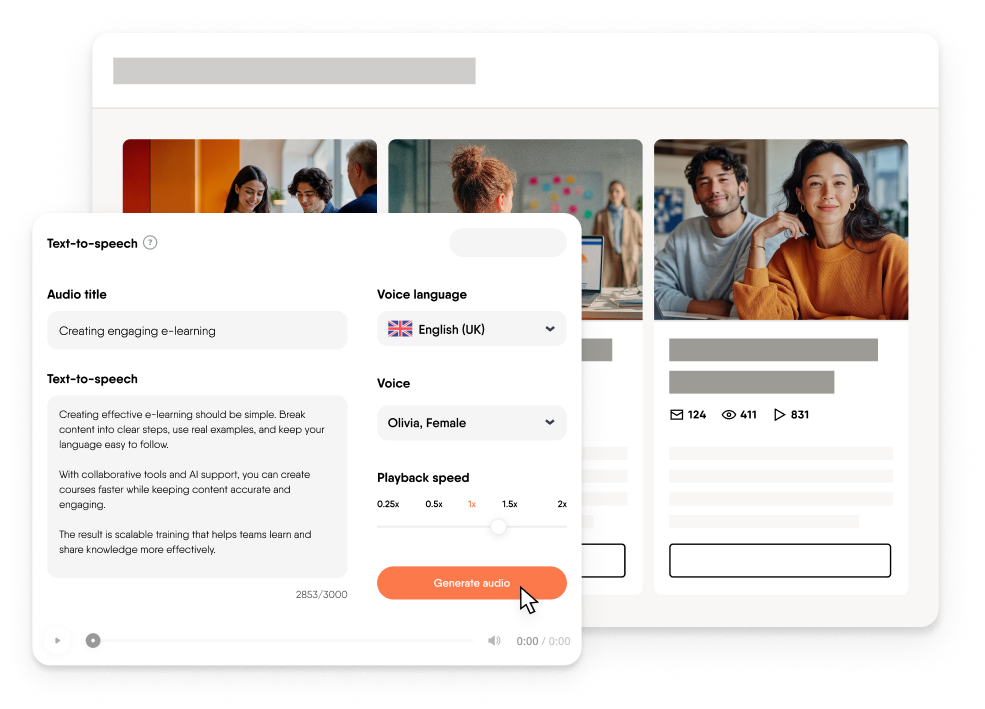 Join teams creating more engaging, accessible courses with Easygenerator's built-in text-to-speech.