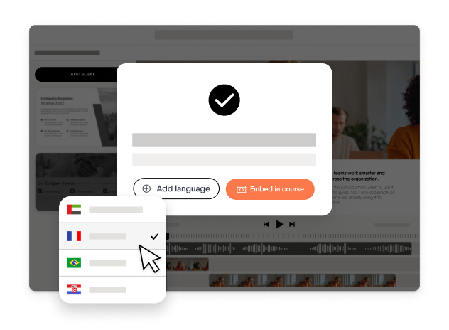 If you need to, translate your video in one click if you. Then embed it directly into your Easygenerator course, or export and share anywhere.