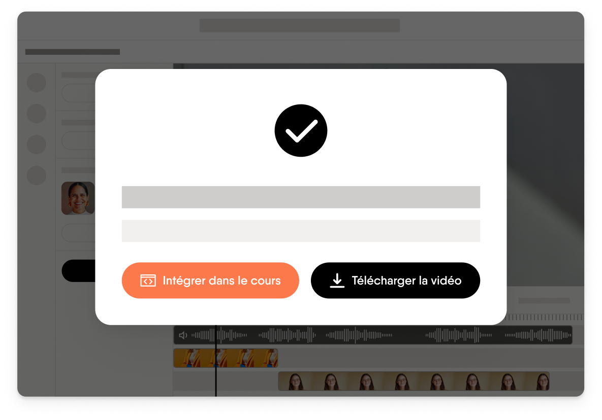 Choisissez la manière dont vous allez partager votre vidéo. Intégrez-la directement à votre cours Easygenerator ou exportez-la au format MP4 pour l’utiliser partout.